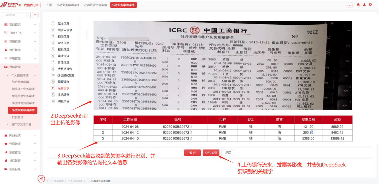价值体现:大幅缩短非标数据处理时间,提升小微客户准入效率。